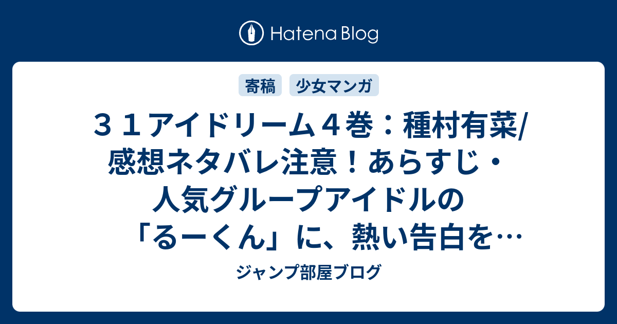31アイドリーム4巻 種村有菜 感想ネタバレ注意 あらすじ 人気グループアイドルの るーくん に 熱い告白をされ付き合う事に Comic ジャンプ部屋ブログ